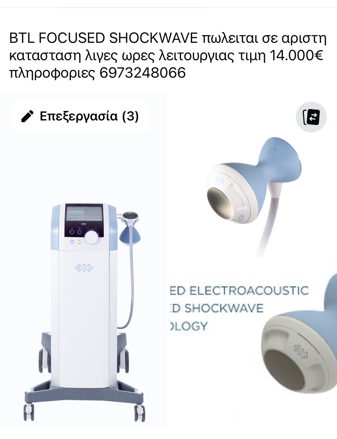 2. Focused shockwave τιμή προσφοράς 12.500€