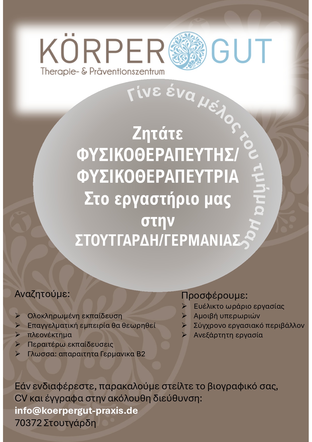Πέμπτη, 25 Σεπ 2025 Aγγελια για θεση εργασιας στην Γερμανια