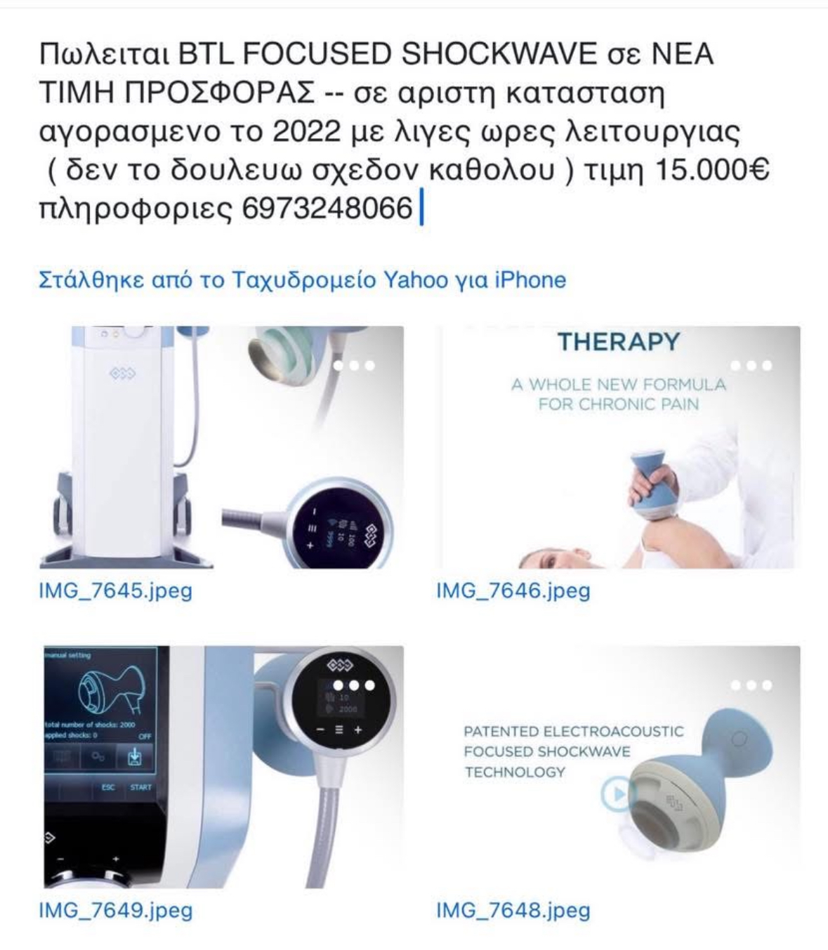 Μηχάνημα focused shockwave BTL 2022 με λίγες ώρες λειτουργίας !!! Καινούριο κοστίζει 21.000 €!!!